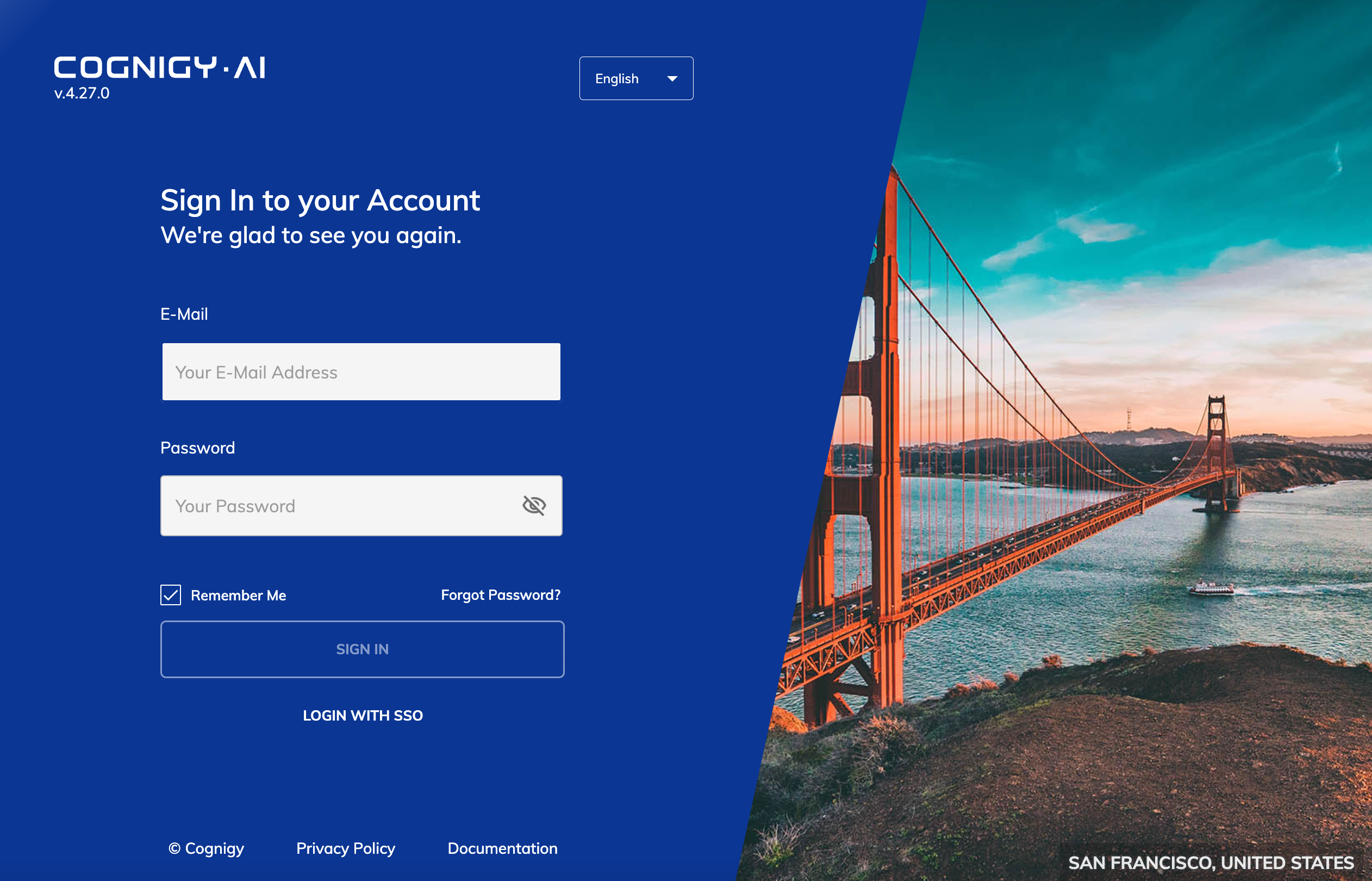 parameter Cognigy.AI Helm release. You should be able to see the login screen of Cognigy.AI frontend application:
