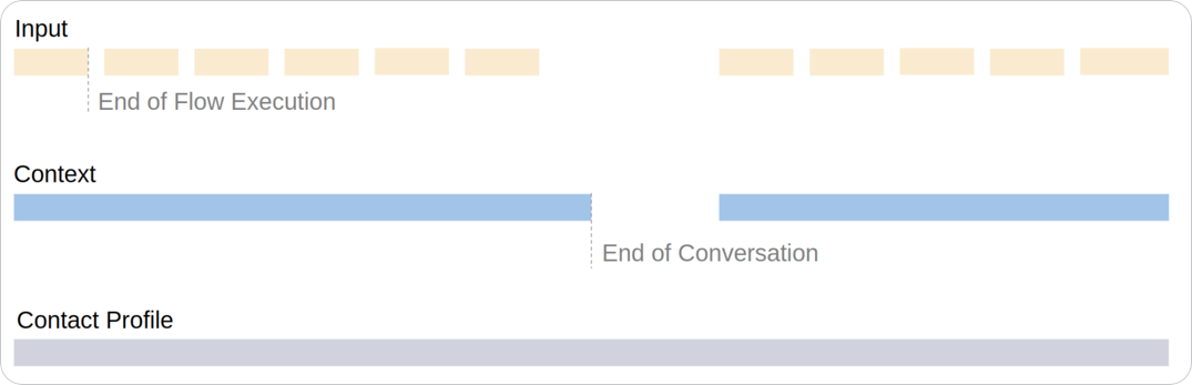 - Context — kept throughout the entire chat or call session.