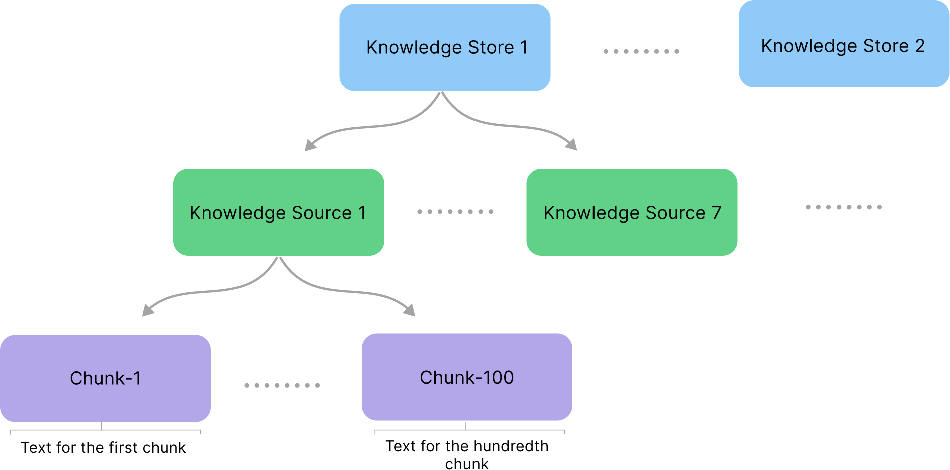 Knowledge AI has the following knowledge hierarchy:- Knowledge Store โ a container that includes Knowledge Sources.