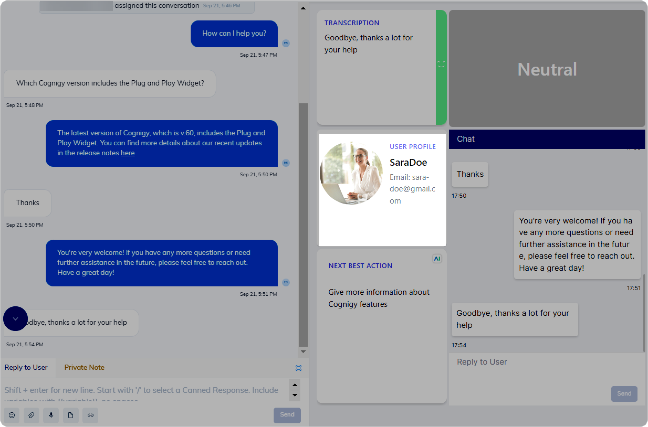 Displaying the userโs profile picture adds a human touch to the conversation, making it more engaging and personal. One way to enhance the conversation further is by showing key customer data, such as their name, account information, or preferences, directly within the chat conversation. This allows human agents to have contextually relevant discussions without the need to search for customer data in multiple tools.