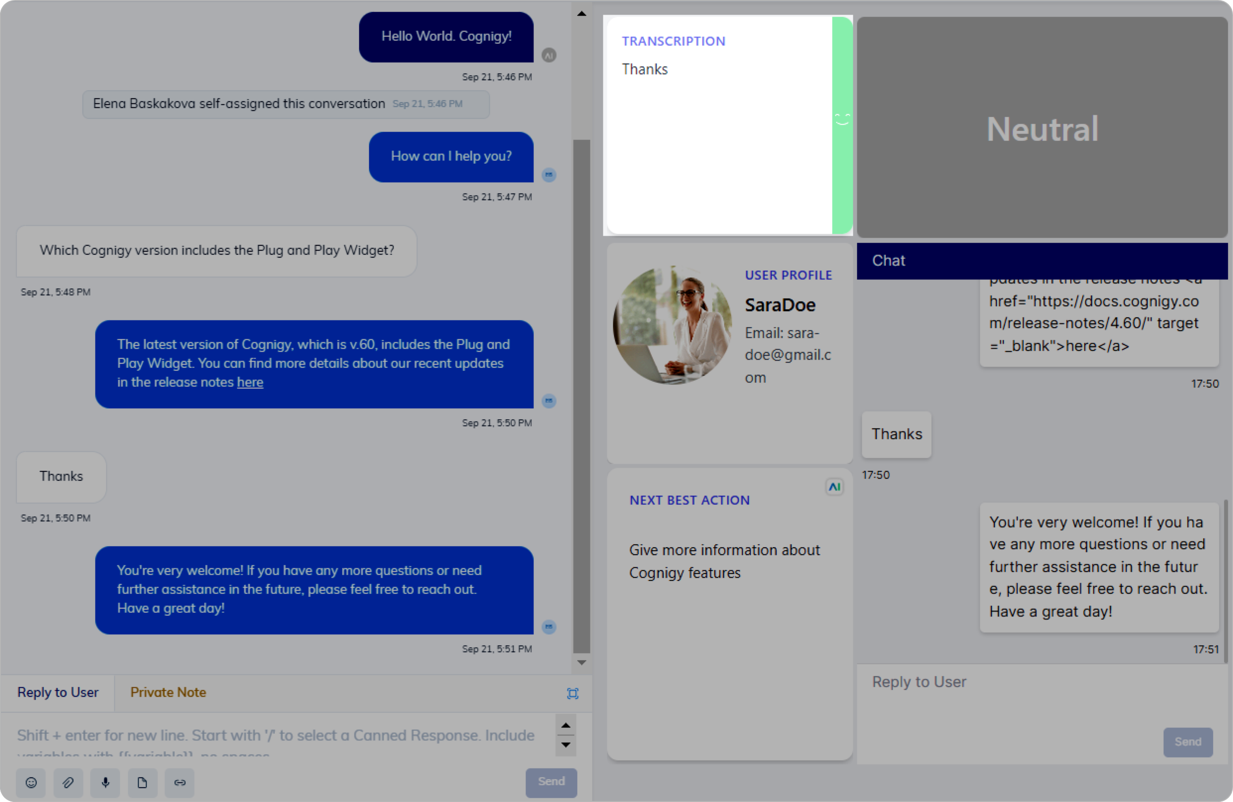 This Node is well-suited for scenarios involving voice calls, where a human agent needs to listen to the user’s speech and make quick decisions. In such cases, the Copilot: Transcript Tile plays a crucial role in recording and presenting the user’s spoken responses. This approach allows human agents to have immediate access to this information, thereby facilitating more effective and efficient communication and decision-making during voice call interactions.