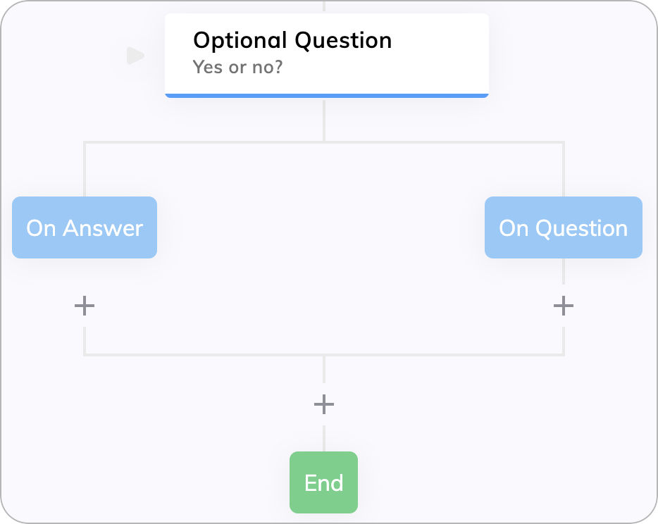 An Optional Question Node requests specific information from the user. The Node can be configured to expect different types of input. As soon as the selected type of data is detected in the user input, the Optional Question Node is answered.Comparison with the Question Node
