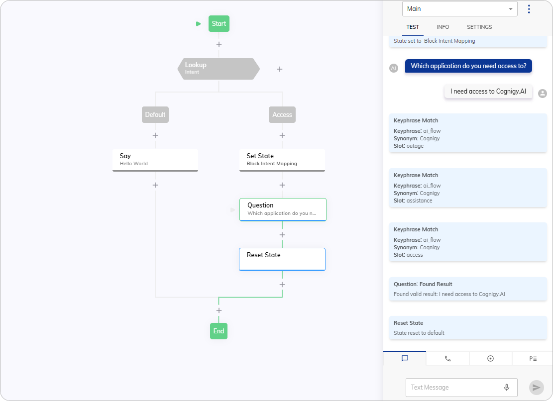 Once youโve configured the Flow, test it using the Interaction Panel to ensure everything works as expected.