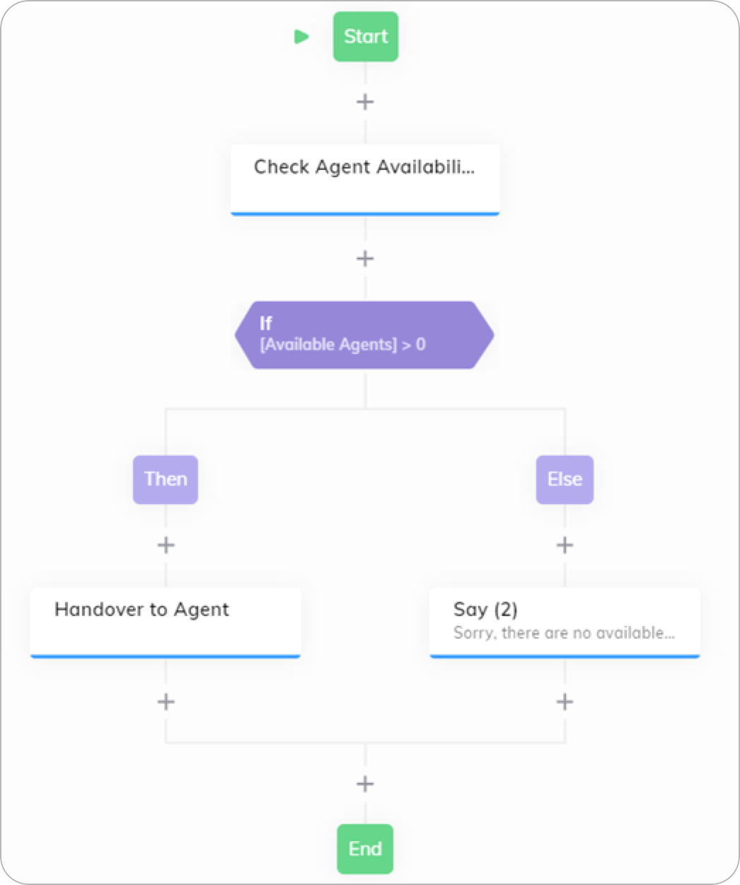 This Node checks the availability of agents with specific skills. With this Node, you can manage your Flow, for example, send notifications to the user that the agent is unavailable at the moment, or suggest an alternative response. The Check Agent Availability Node supports the following handover providers:- Cognigy Live Agent