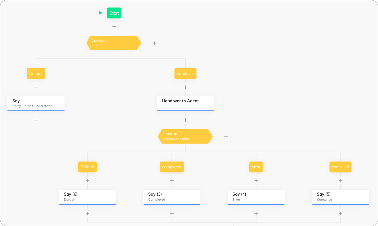 - Flow Pausing and Resumption. When a handover is initiated, the Flow pauses until the end user cancels the request or an agent finishes the conversation. Upon completion, the Flow resumes execution below the Handover to Agent Node.
