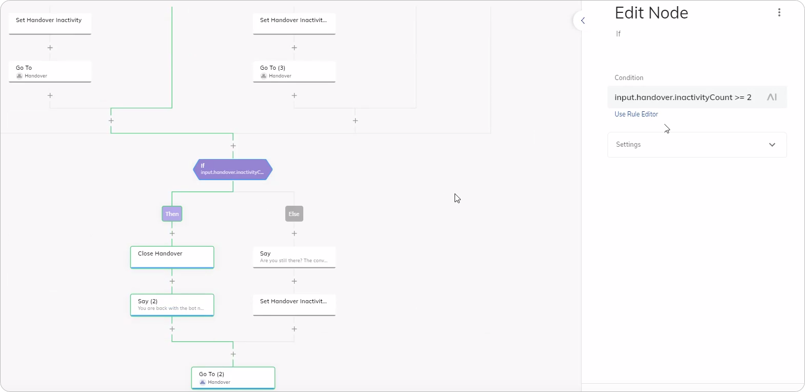 condition in the Condition field of the If Node. For example, input.handover.inactivityCount >= 2