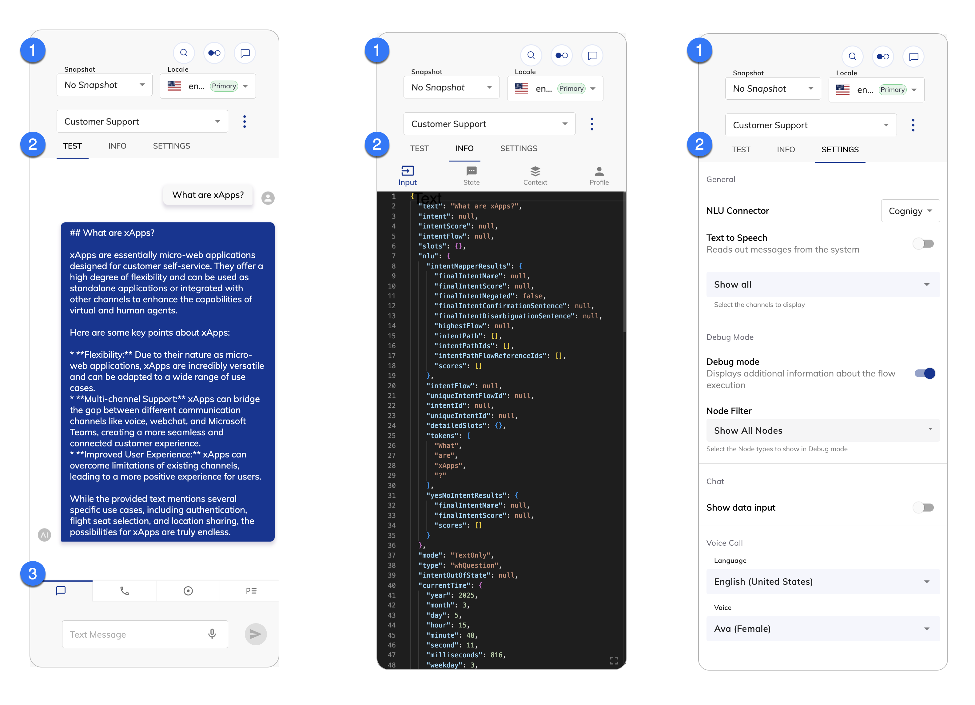 - Three Testing Modes. Test your AI Agent across all Channels with the chat, voice call, and live follow modes to simulate real-world interactions.