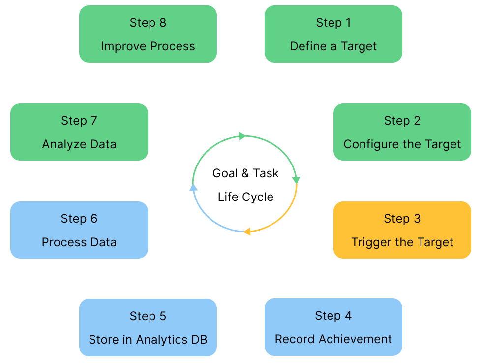 - The system records the goal or task completion and stores it in the Analytics database.