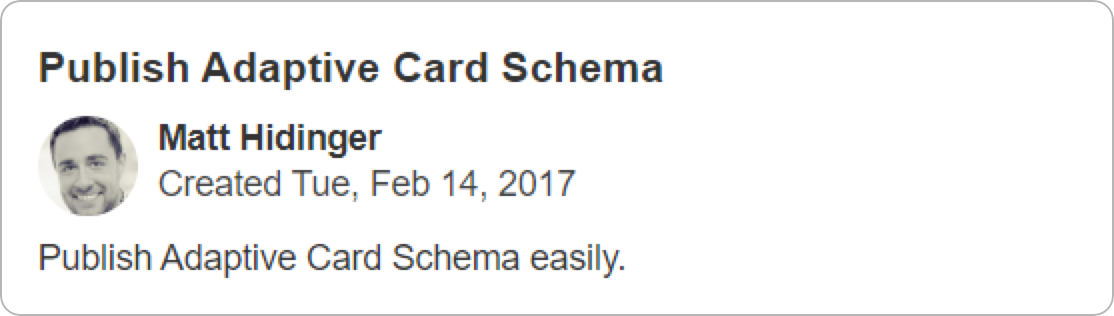 "$schema": "http://adaptivecards.io/schemas/adaptive-card.json",