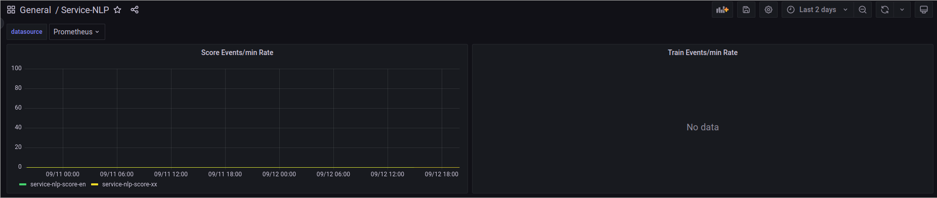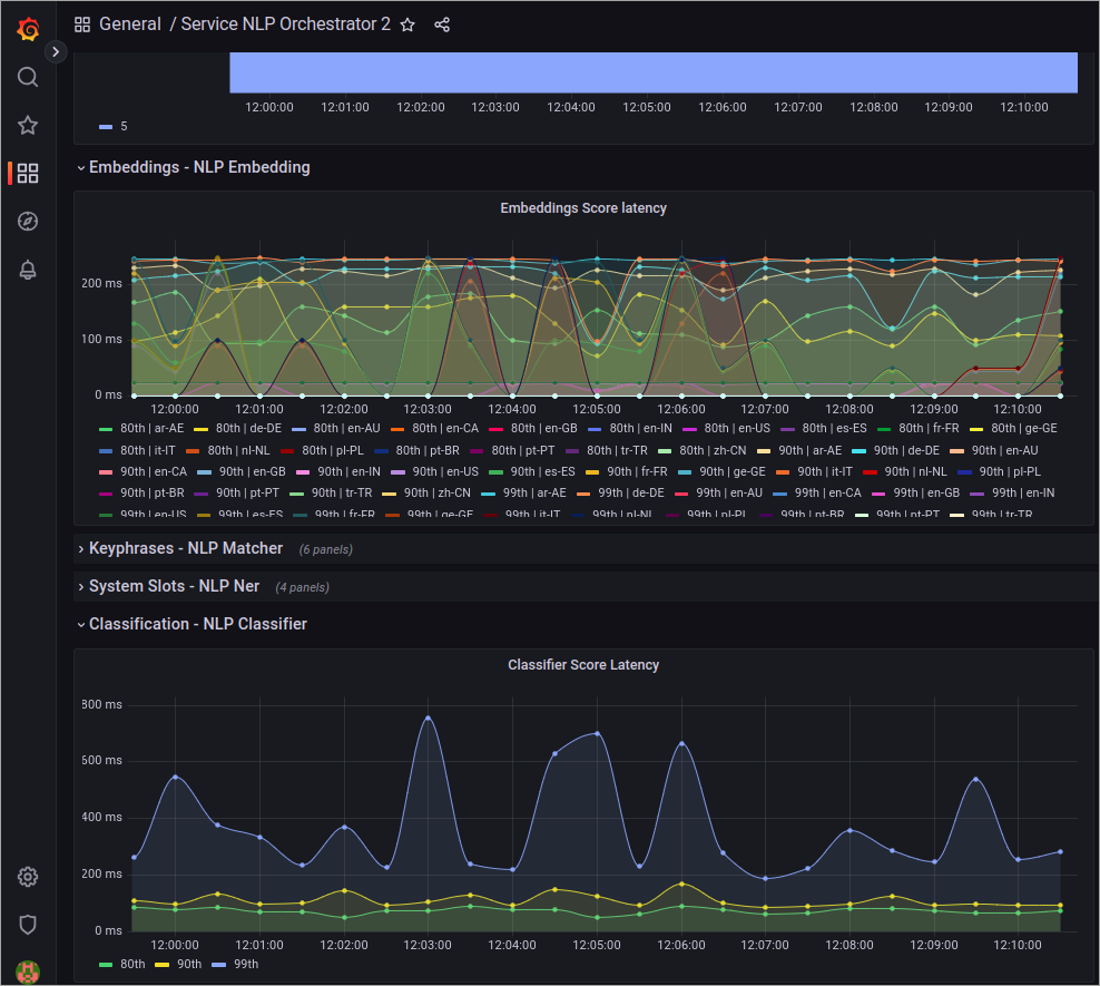 To ensure that the migration has been completed successfully and that NLP V1 is no longer in use, check the Service NLP dashboard in Grafana. Here, you can monitor the traffic received by the old NLP V1 stack. We recommend observing this for a couple of days, and if it consistently shows 0 loads, you can safely remove the V1 stack.