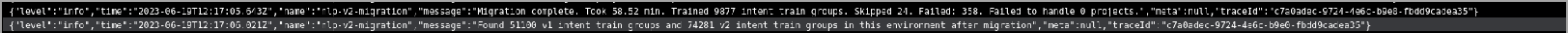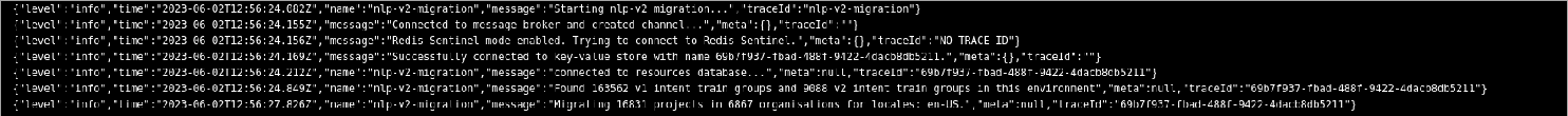 The migration process can take a considerable amount of time, depending on the number of Flows present in the environment. If you have the option to add extra hardware for the migration or if you have additional capacity available, itโs possible to scale up the NLP V2 stack and migrate multiple projects simultaneously. To achieve this, we recommend migrating language by language. For instance, start by migrating all English models, followed by all models that use the XX container group, and so on.