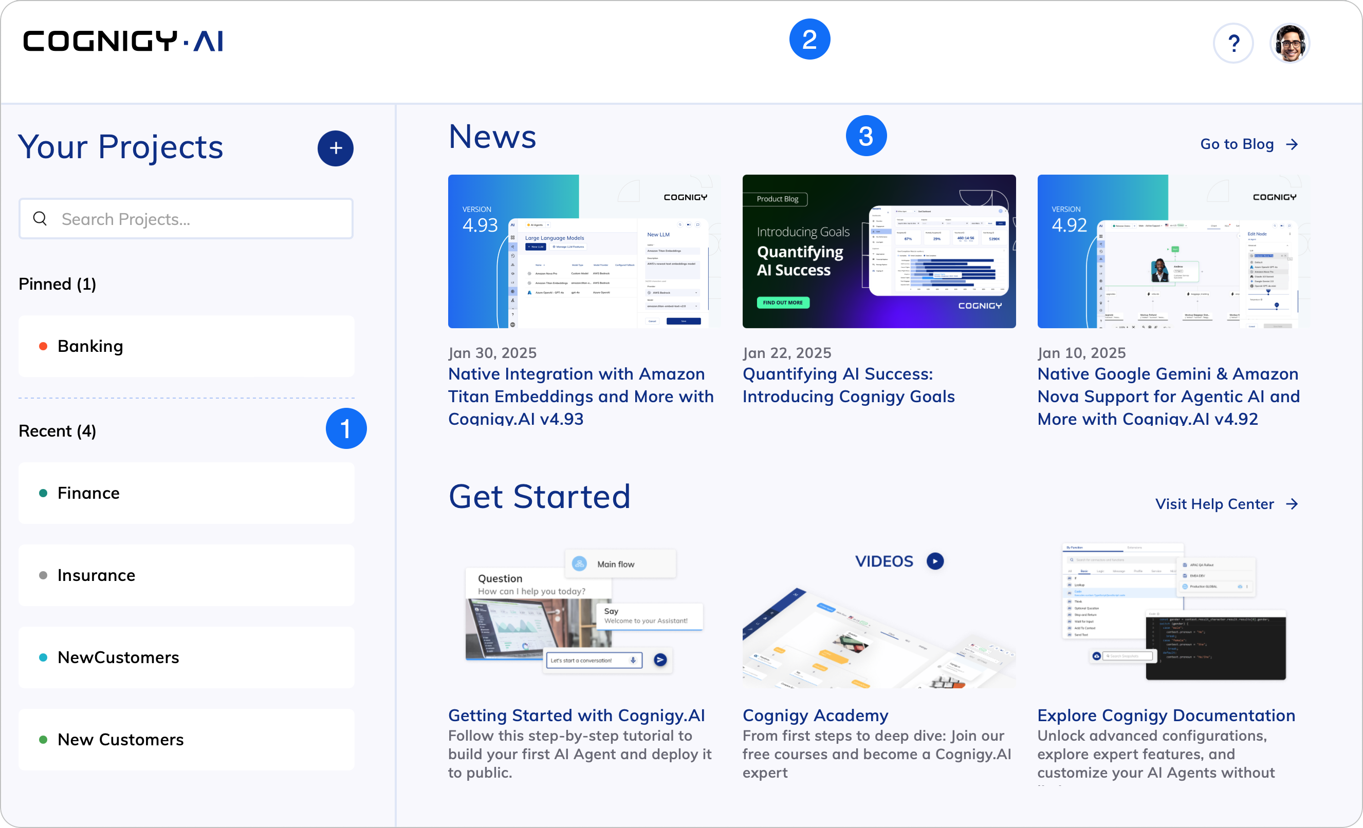 Get Started | Links to the Cognigy.AI Help Center. |