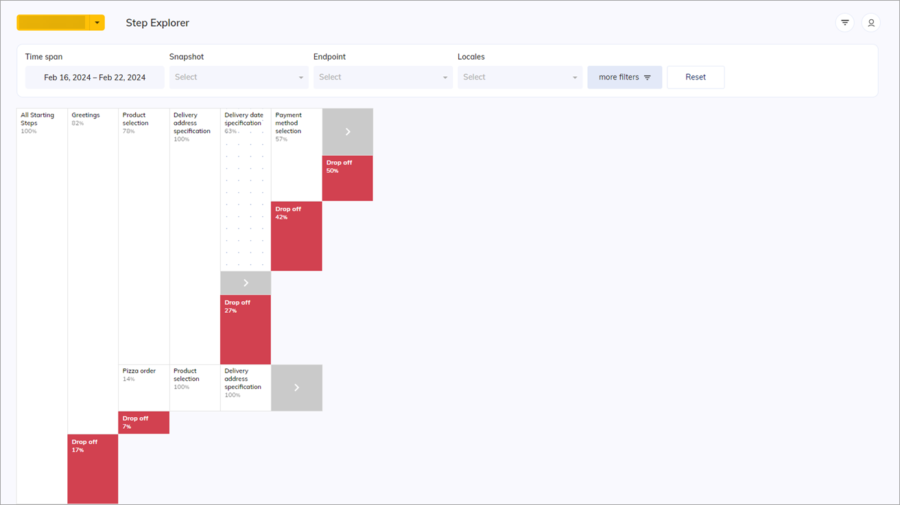 | Open conversations that ended here | This option appears in the menu only if you click the Drop-off step. This means that you can view all sessions from which end users leave a step before finishing it. |