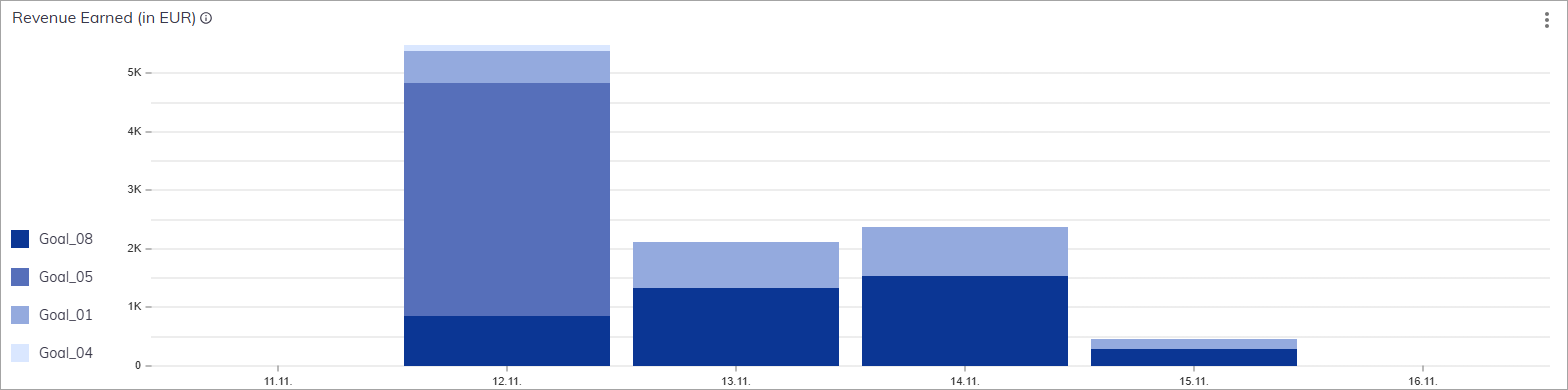 Displays the total revenue earned for each goal completed within the selected time period. You can analyze earnings across different goals to identify the most efficient processes. Source table: