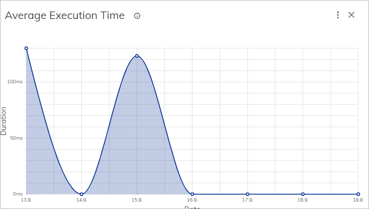 Displays the average execution time across a specific timespan. Formula: Average Execution Time =Sum of Execution Times / Total number of inputs