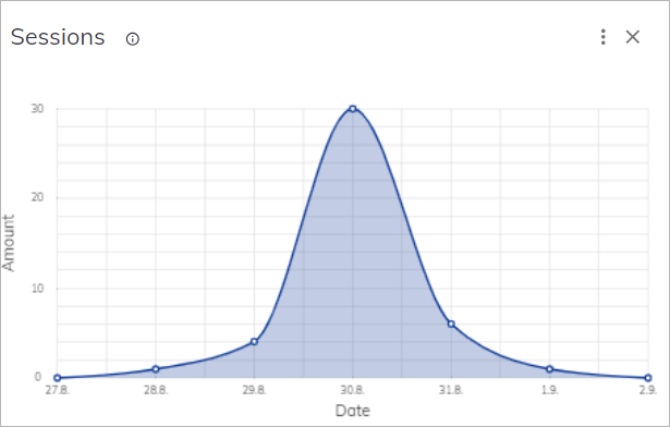 Indicates the total number of currently active user sessions in the last 15 minutes. This widget updates in a regular interval of 30 seconds.Total Sessions