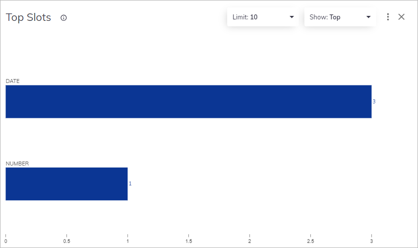Similar to Top Tasks and Top Intents, this chart displays top-rated number of slots displayed in a bar chart. Source table:
