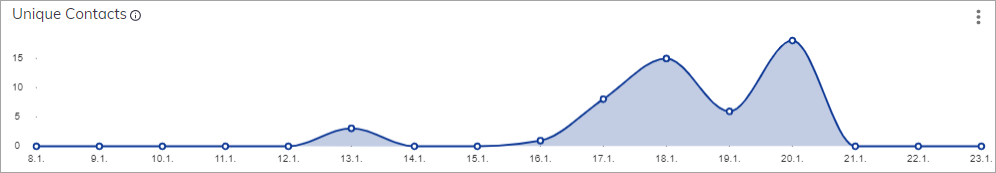 ) over a selected time span. If a user has multiple sessions in a single day, they are counted as one unique contact for that day.