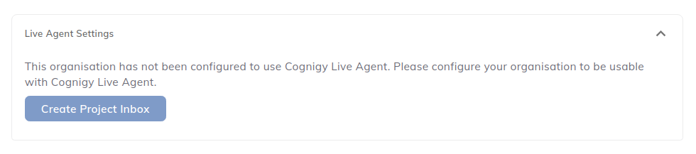 The Create Project Inbox button could also be disabled for the following reasons:- You do not have the Cognigy Live Agent feature enabled.