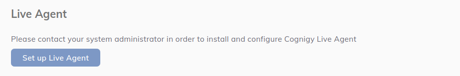 If the Set up Live Agent button is disabled, it could be for the following reasons:- You do not have the Cognigy Live Agent feature enabled.