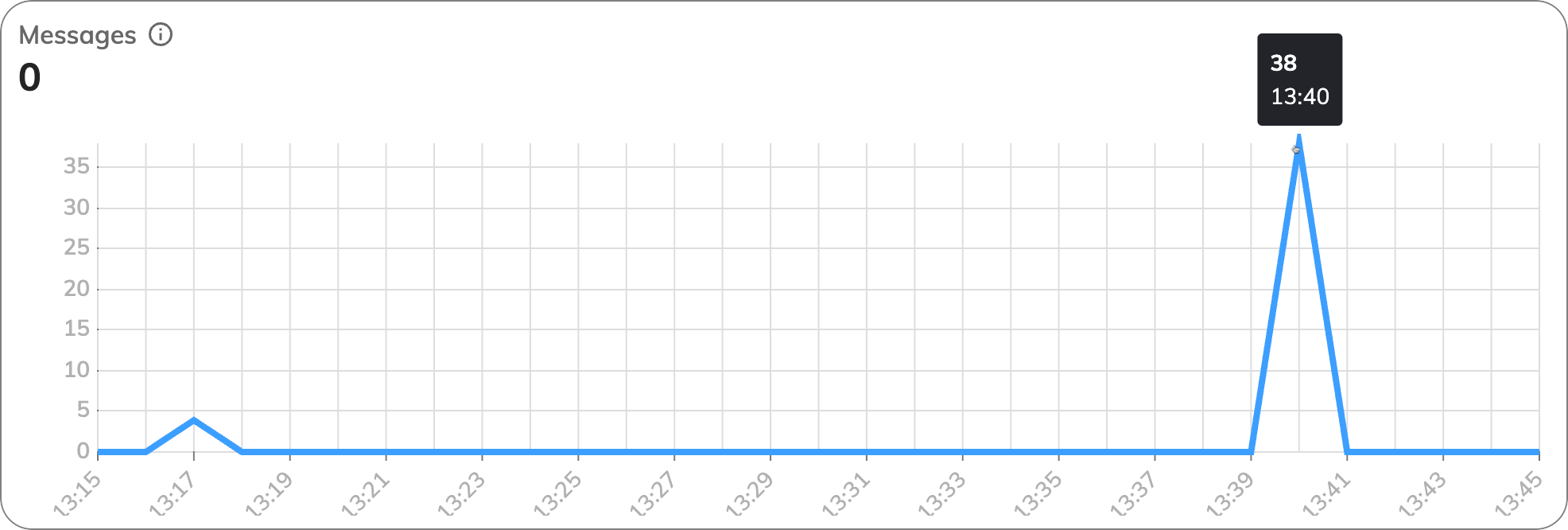 Inspect the Messages chart. This chart provides insights into user interactions, showing the volume of user inputs sent to the system.