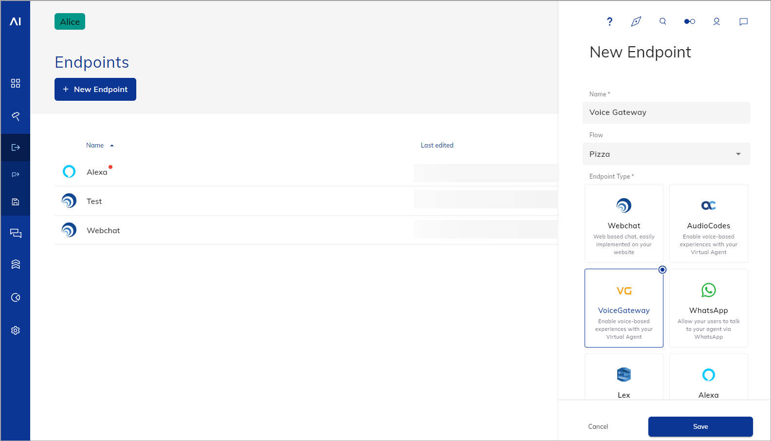 - Select the voice-gateway Endpoint type.
