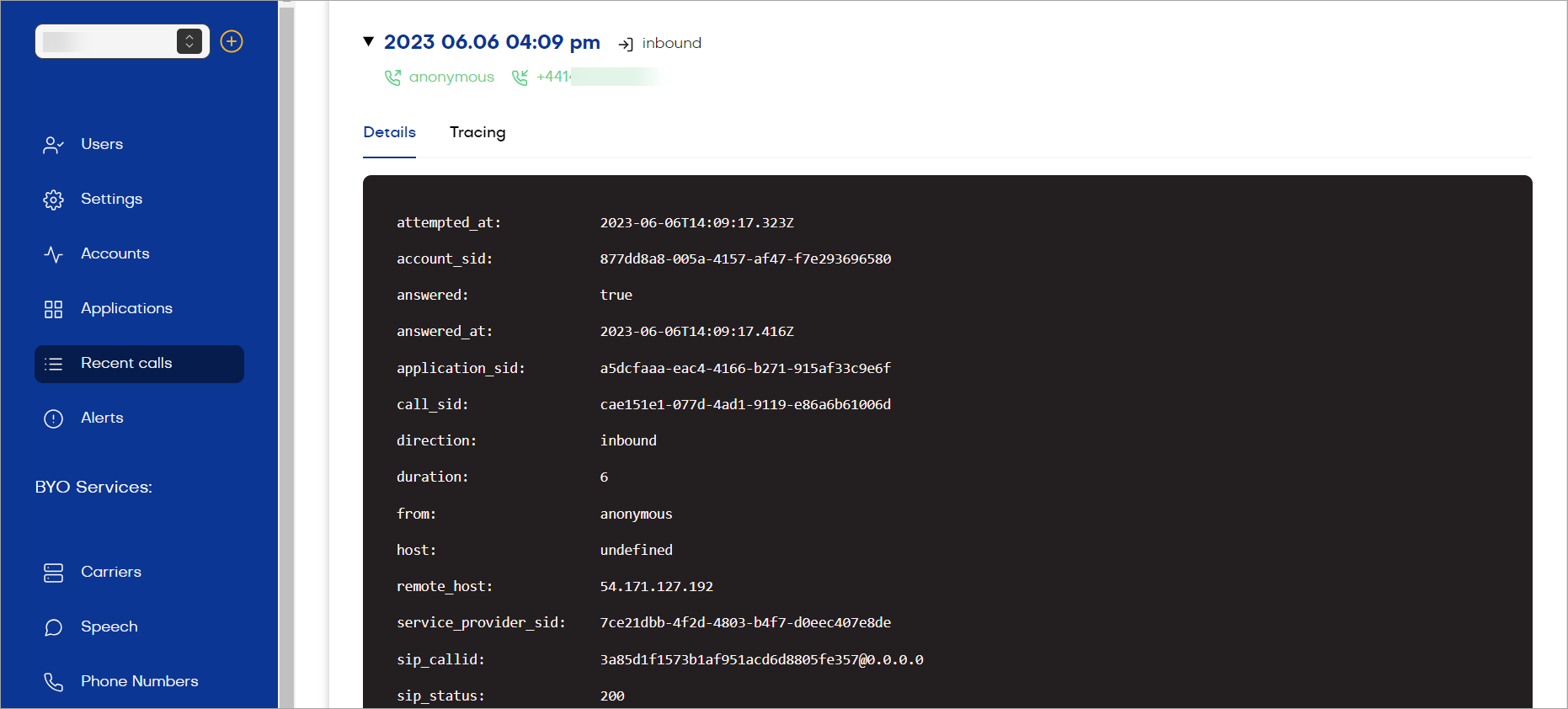 Additionally, Voice Gateway provides PCAP files, which can be downloaded in the detailed information overview.Call Tracing