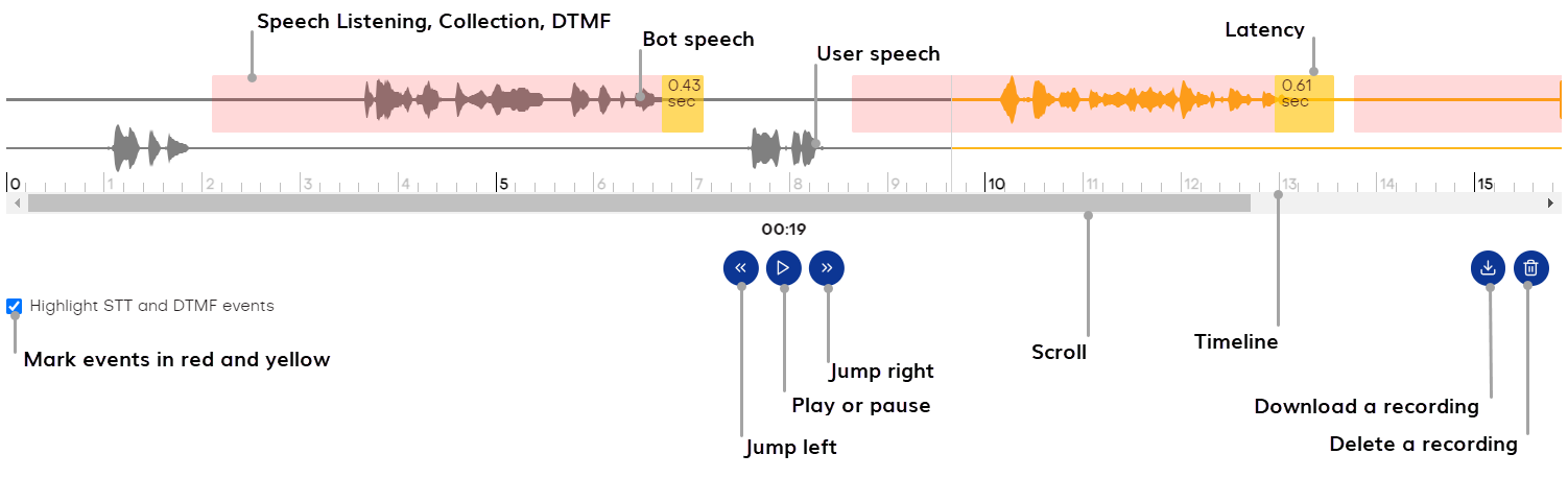 Record your calls while setting up your voice agents for debugging purposes. This approach lets troubleshoot your calls, identify where latencies are coming from, and listen to your voice agent’s outputs to ensure they are working seamlessly. To enable call recording, use the Account or Application settings. When call recording is enabled, you can use the embedded media player to listen to recordings of calls. Note that the recording will consist of only the caller track and the agent track. The dub track for Atmosphere Sounds will not be included in the recording. With the included media player controls, scan the audio and download the recording locally.