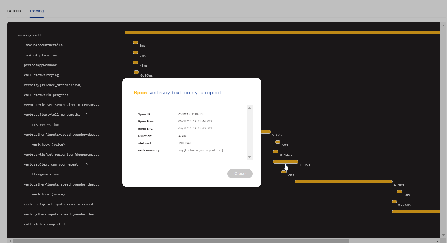 This feature is in Beta. The data displayed on the Tracing tab does not have persistent storage and may be lost at any time.