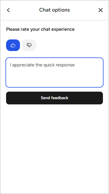 - When you send a reply, the AI Agent asks you to leave feedback on the Chat Options screen. In the upper-right corner of the current page, click