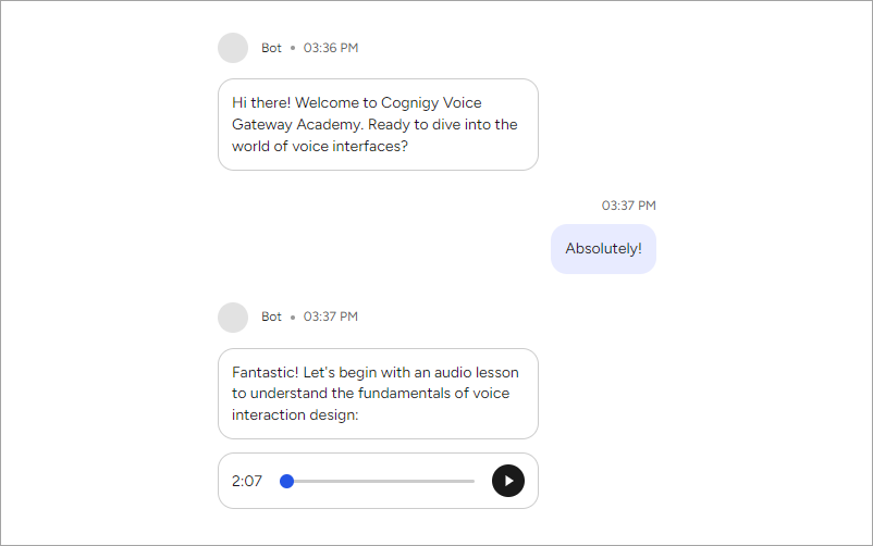 The Audio feature enables you to send of audio files. Users will see a web player and can play the file instantly.