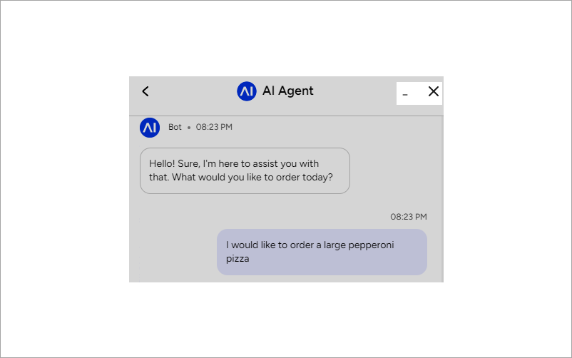 Minimize — this button collapses the window without ending a conversation. Users can return to the chat by expanding the window again. The