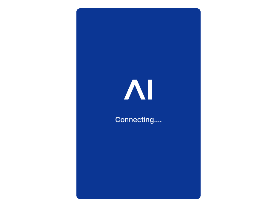 The Connection Screens are shown while the real-time connection to the backend is re-established. The default Connection Screen can be replaced with a custom-built xApp Page.